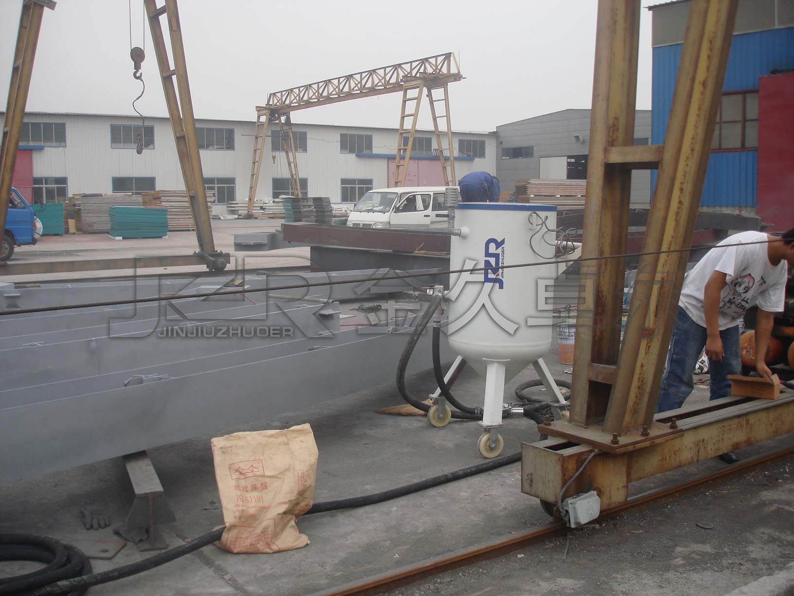 北京通州 漷縣用戶對鋼結構工件進行噴砂除銹 已選用2臺JZK-600P高效型噴砂機